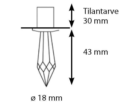 Der CR-43 Zugangsloch-Durchmesser beträgt ø 14 mm, der Außendurchmesser ø 18 mm. Die Länge des Kristallteils beträgt 43 mm. Die Installation erfordert 35-45 mm Freiraum hinter der Decke oder Wandfläche.