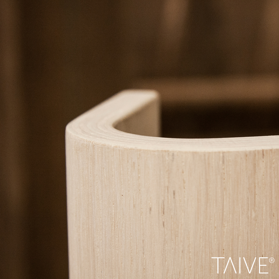 La structure de la banquette TAIVE est robuste, ce qui est similaire à un produit de l’industrie de la menuiserie de meubles. Les châssis sont empilés avec des chevilles en bois et des raccords d’écrou de broche. Le matériau en bois massif habituellement utilisé dans le sauna chaud a toujours tendance à se rétracter légèrement, cela provoque souvent le desserrage des raccords, au pire, des grincements désagréables ou même la dégradation des banquettes. Le châssis de la banquette Taive est en contreplaqué de bouleau finlandais, et sa dilatation à l’humidité est minimale. Si un relâchement apparaît sans la structure il est facile de la resserrer avec une clé hexagonale.
