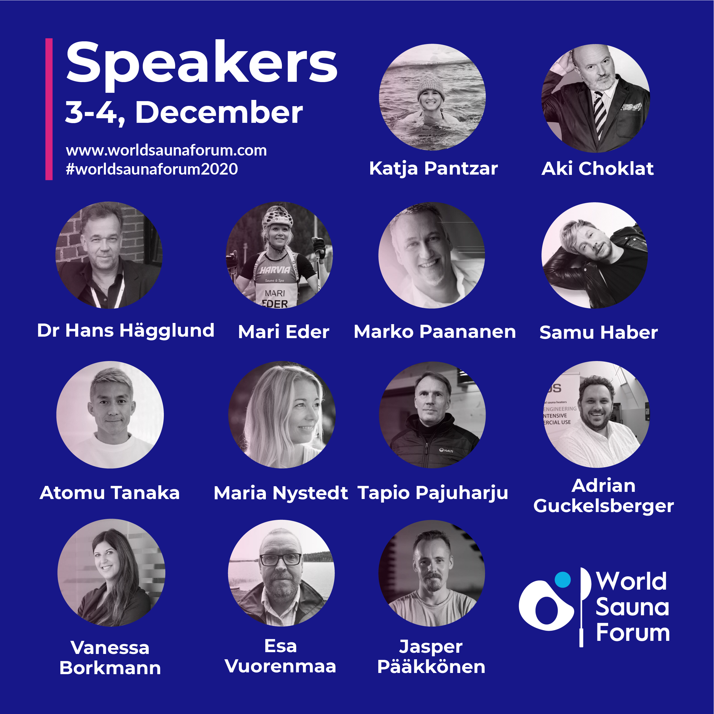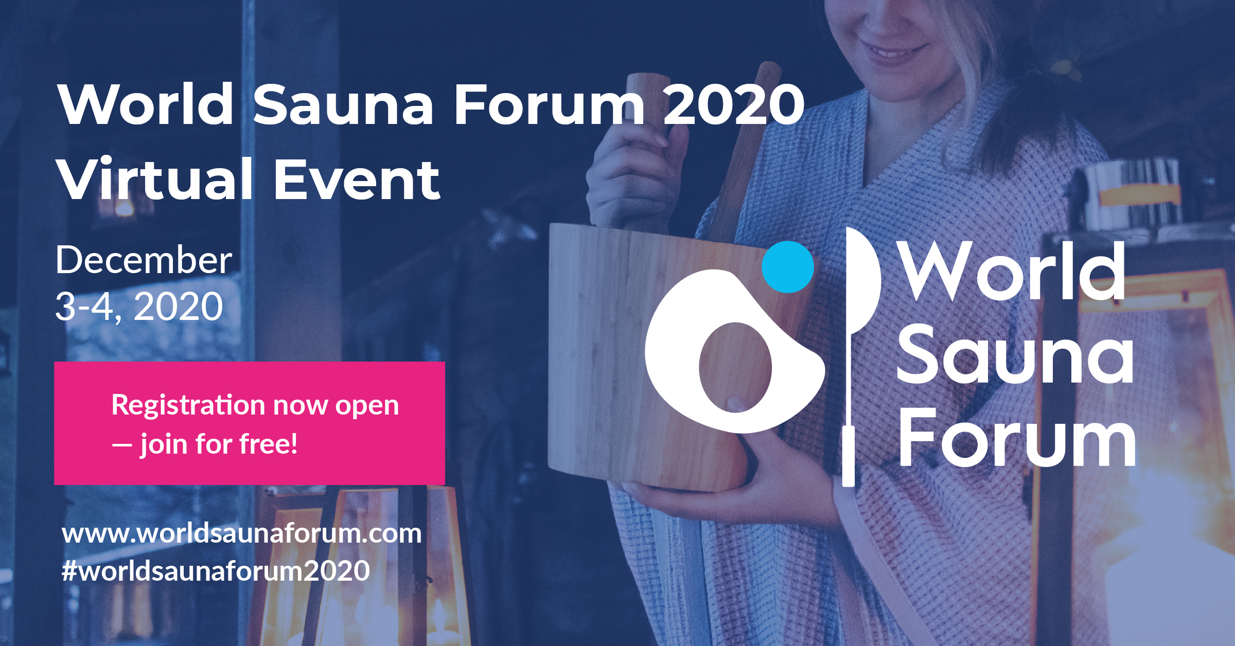 Inscrivez-vous gratuitement sur la page www.worldsaunaforum.com/registration, suivez-nous sur les réseaux sociaux  pour voir notre actualité et connectez-vous le 3-4 décembre pour assister aux discussions autour de la meilleure expérience de sauna au Monde.
