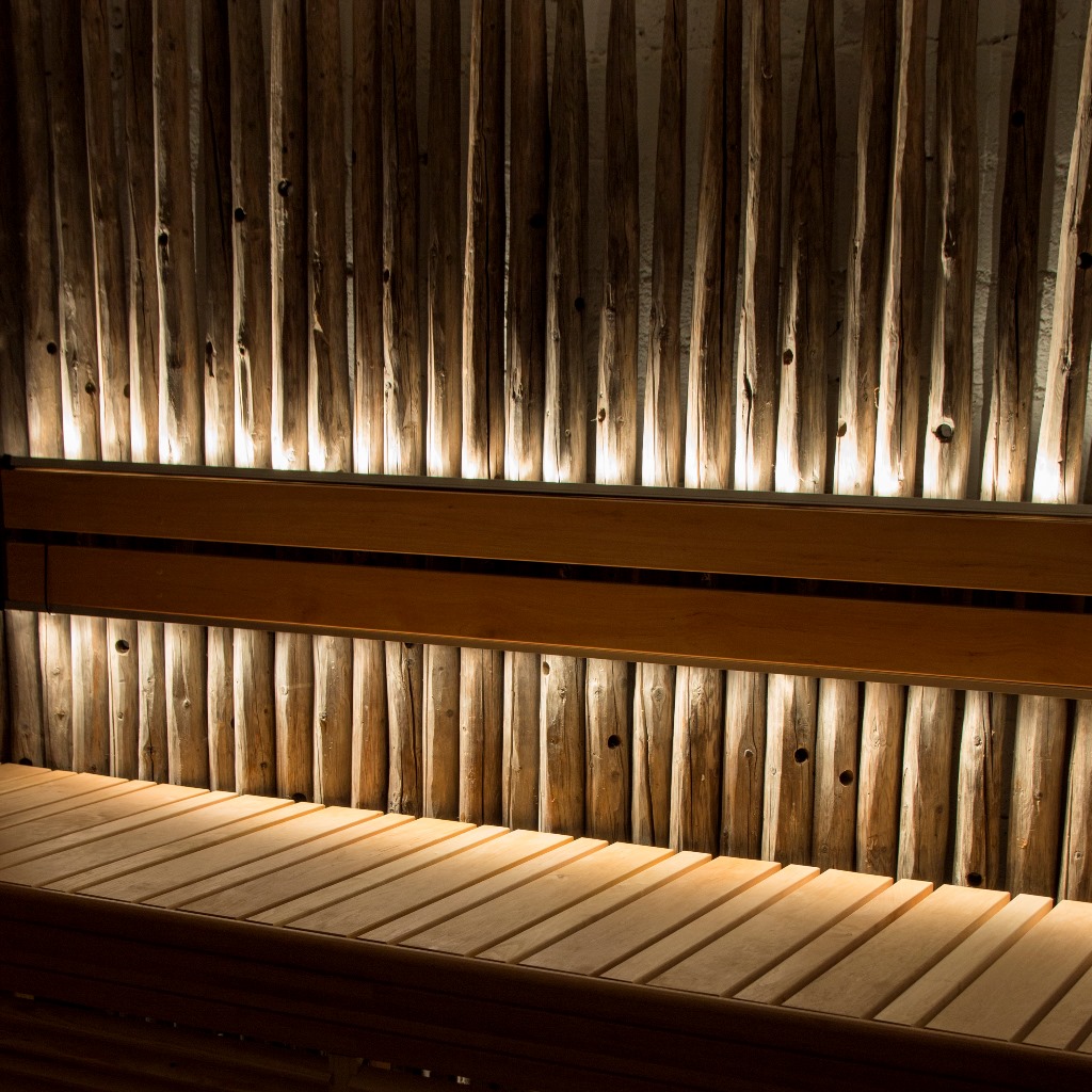 Le kit Sauna Linear s’installe facilement, même dans un sauna existant. Les fibres et le projecteur peuvent être montés en surface.