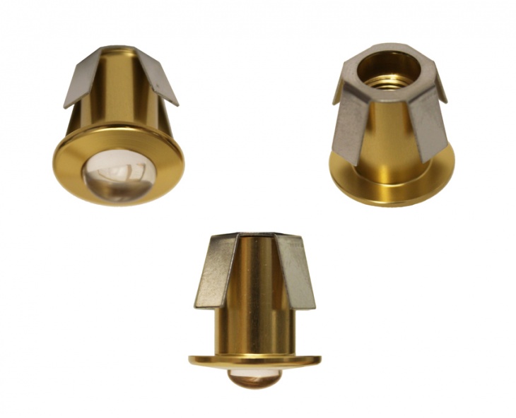 Корпус монтажной втулки CR-05 — позолоченная нержавеющая сталь. Линза прозрачная. Монтажная втулка CR-05 подходит для волокон C-Flex / S-Flex 4 — 6 M8. Диаметр монтажного отверстия составляет ø 14 мм, внешний диаметр ø 18 мм.