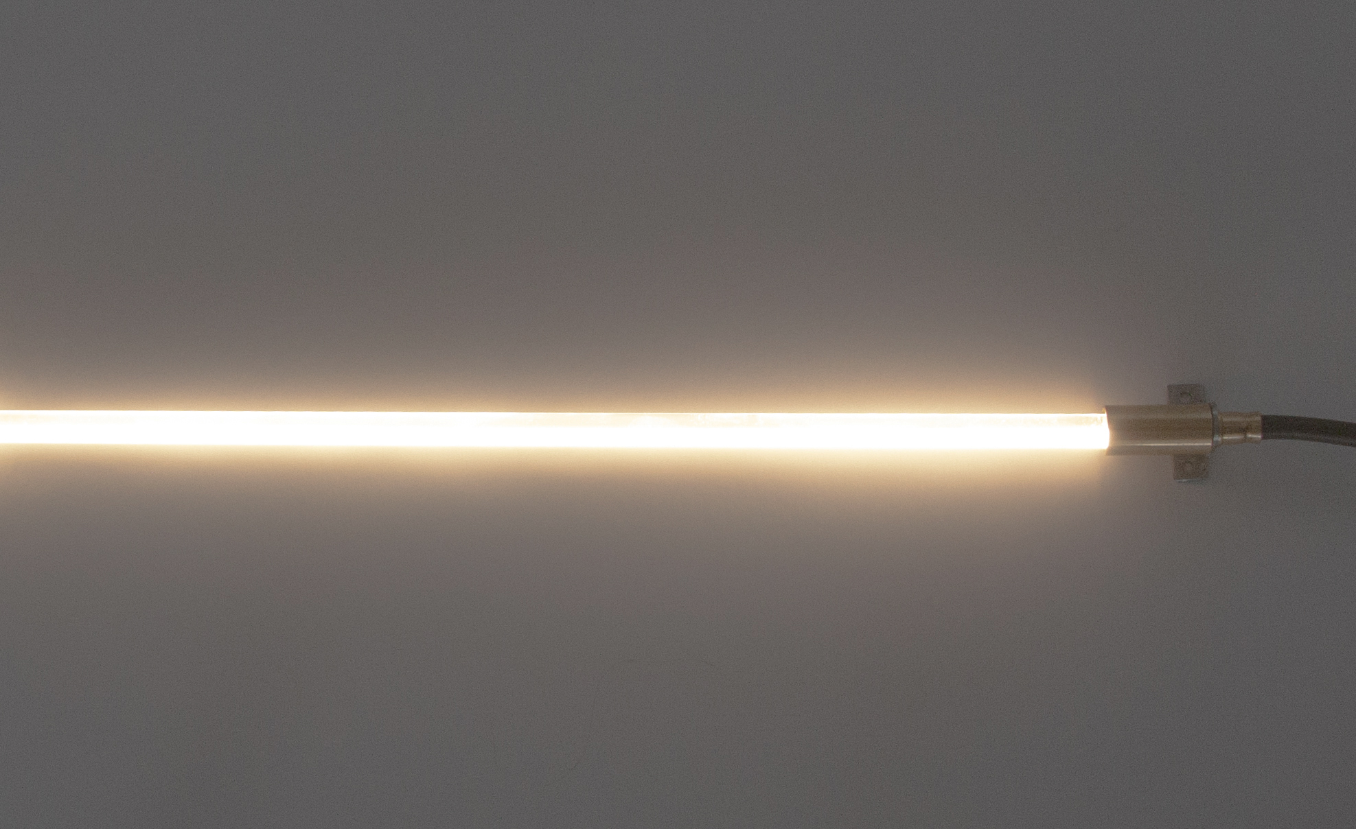 Готовый к монтажу комплект Sauna Linear Glass Set включает в себя один оптический стеклянный стержень, проектор и стекловолоконный жгут. Он создает равномерное, линейное освещение на крае потолка. Стержень освещается с обоих концов.