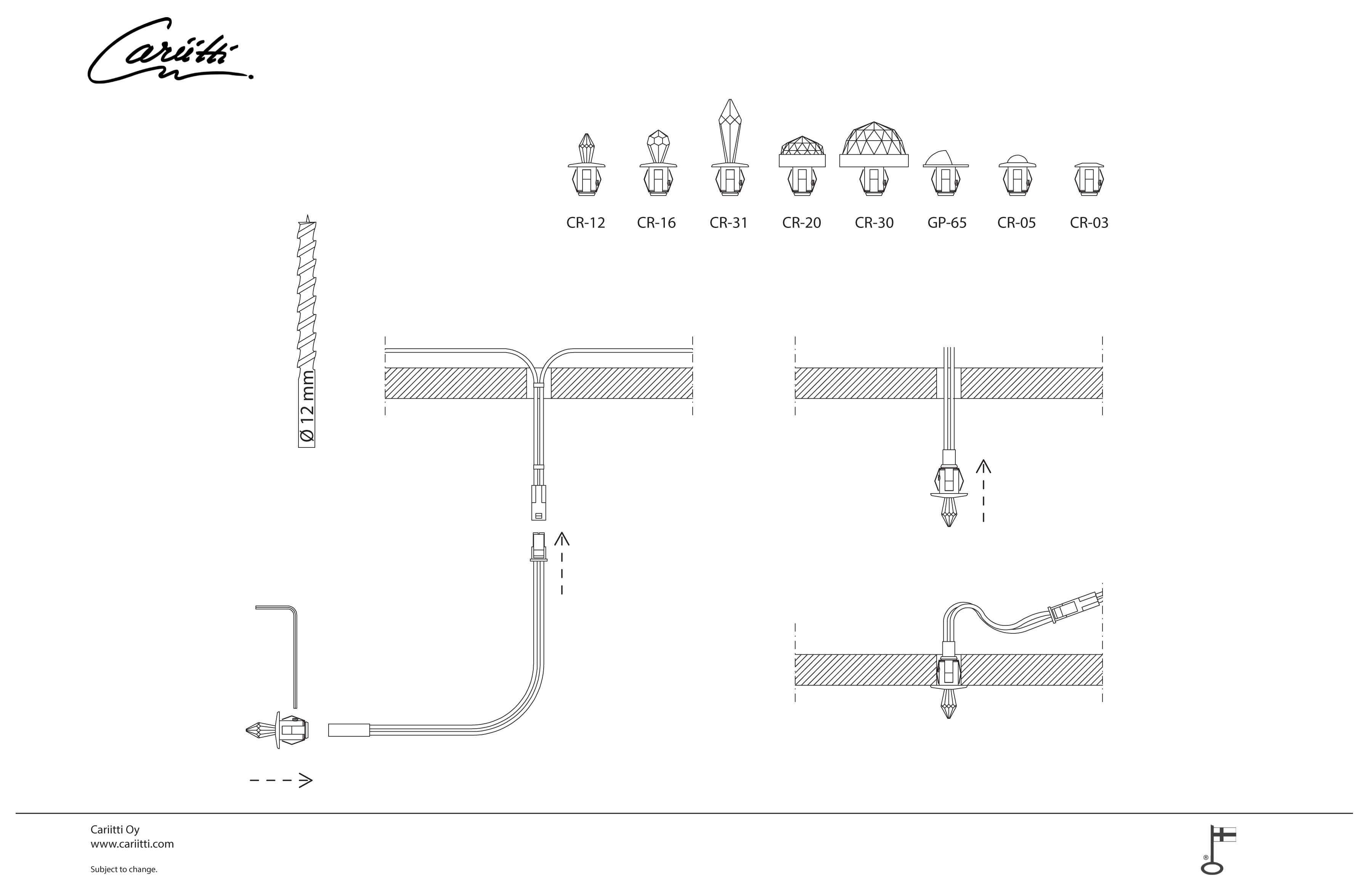 CR-31 armatur i krom eller guld utförande, med Swarovski Strass -kristaller. Passar med IP67 Led-serierna. CR-31 monteringshål ø 12 mm ja yttrediameter ø 18 mm.