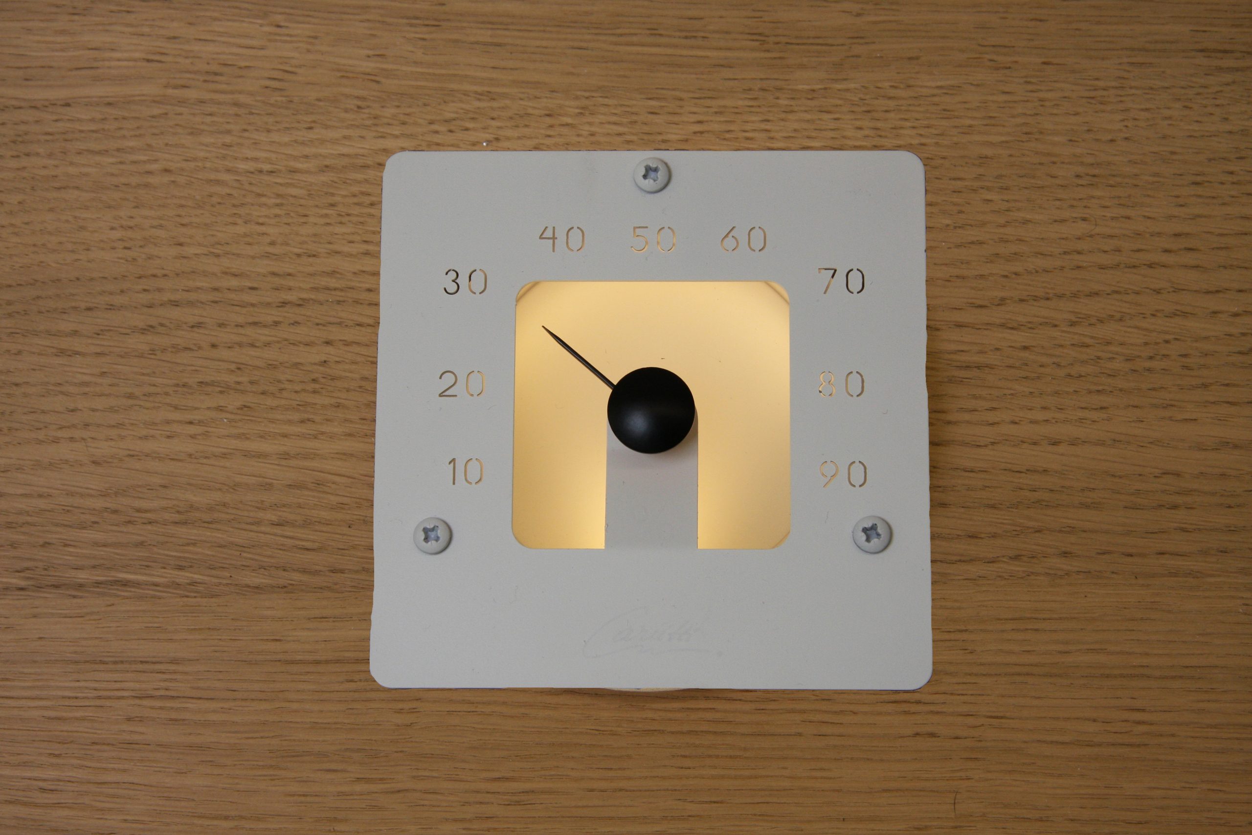 Den fyrkantiga bastutermometern är tillverkad av satinglasmassa och slipat rfs-gradering. Metaren kan belysas med en led eller med en 2-4 mm fiber. Vit.