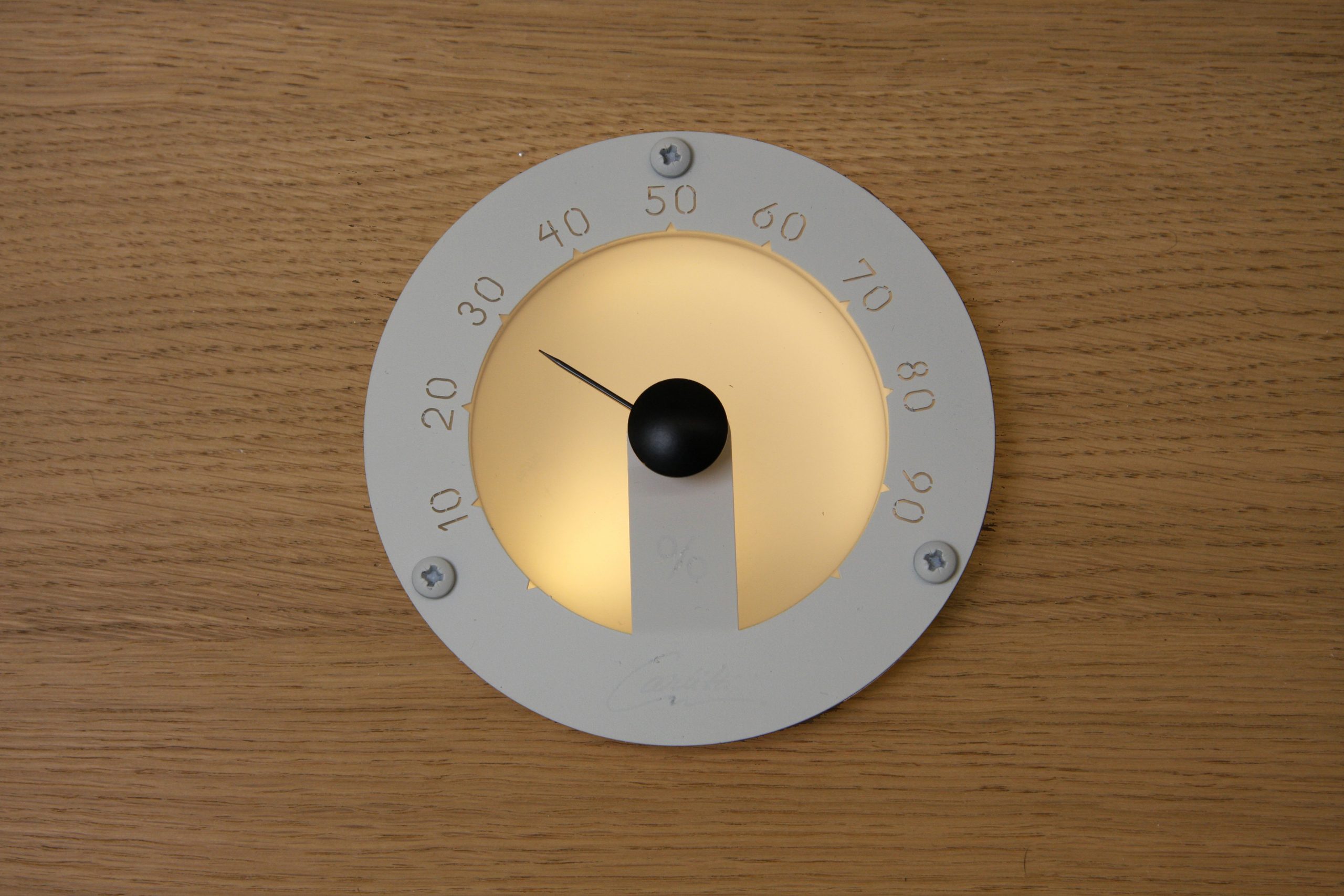 Bastu fukt termometern är tillverkad av satinglasmassa och slipad rfs-gradering. Metaren kan belysas med en led eller med en 2-4 mm fiber.
