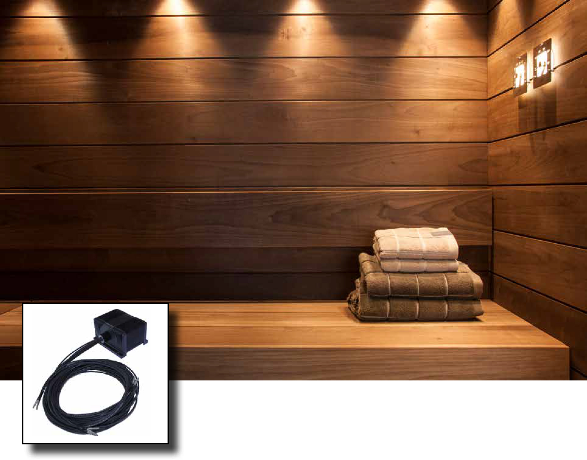 Täydellinen asennusvalmis sarja sisältää projektorin, kuitunipun, lukkorenkaat ja kiuaslinssin. Tämä sarja soveltuu erittäin hyvin pienten ja keskisuurten saunojen valaisuun. Saunan kokosuositus 3-5 m². Sarjan kuidut ovat lasia ja kestävät 180 °C kuumuutta; ne voidaan asentaa saunan kattoon.