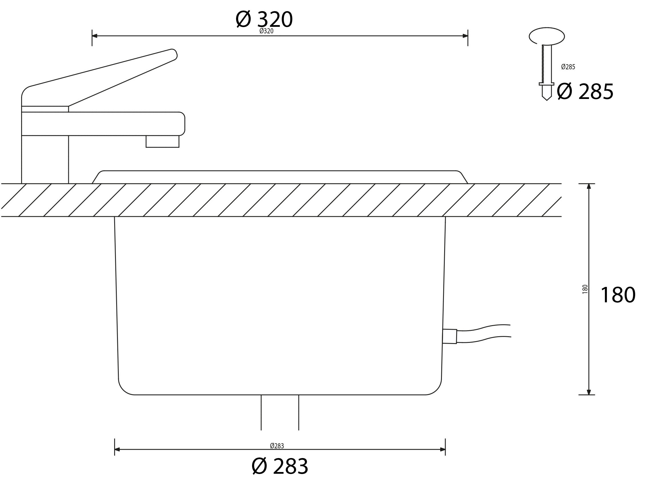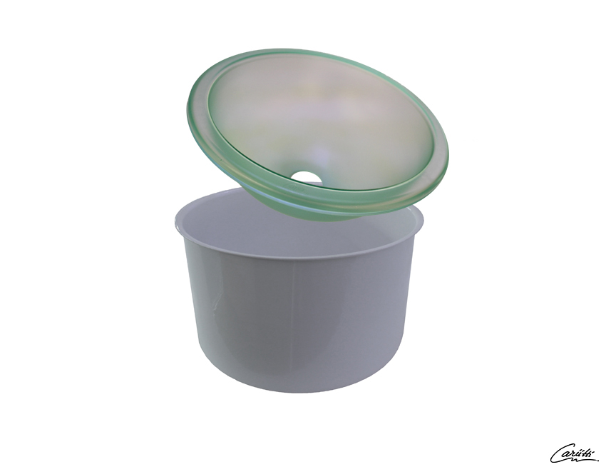 Kiulun ulkohalkaisija on 320 mm, asennusreiän halkaisija 285 mm ja korkeus 180 mm. Kiulun materiaali on vihertävää akryylia, sisältää pohjaventtiilin.